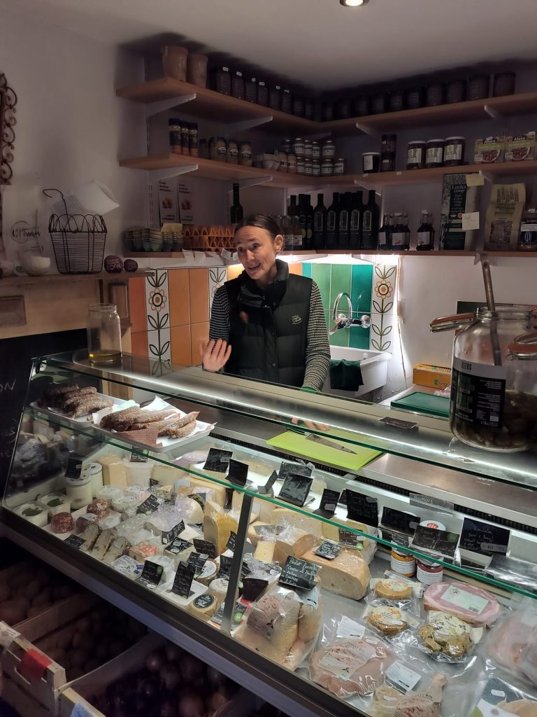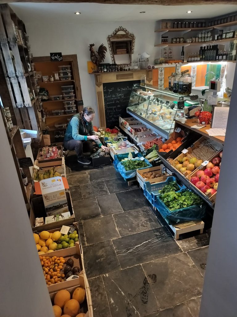 Derrière les murs gris de cette bâtisse en pierre du pays, se dévoile un petit commerce plein de charme, débordant de couleurs et d’odeurs de mille et un aliments locaux et naturels.