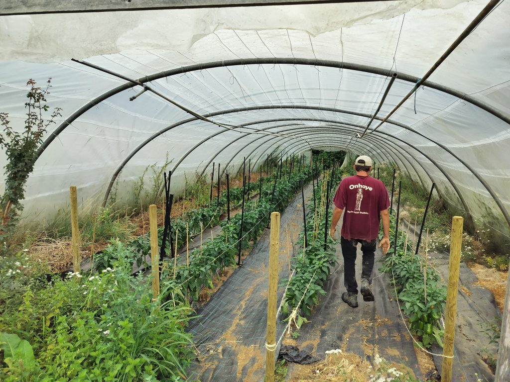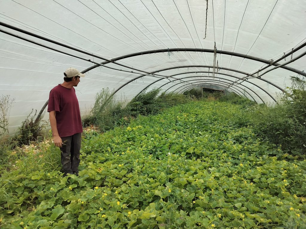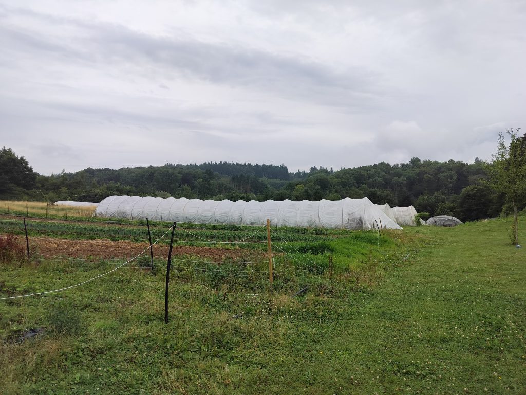 Gilles, il est sympa, accueillant et spontané. Entouré par sa compagne, ses deux enfants et parfois l’aide de stagiaires, il semble comblé par ce projet connecté au vivant. Aujourd’hui c’est pas moins de 100 familles régulières qui dégustent chaque semaine le résultat de sa production. Il écoule aussi certains légumes vers des coopératives voisines, comme Coop ESEM ou Paysans-Artisans Coopérative. Voici quelques produits proposés par L’Epicurie : Tomates, poivrons, aubergines, salade, poireaux, courgettes, courges, mâche, carotte, navet, céleri, céleri-rave, chou-rave ou encore des fraises et des melons !