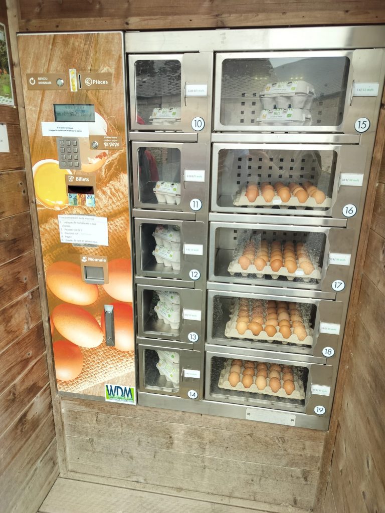 Des moutons Shropshire profitent du même décor et entretiennent les pelouses. Julien veille au bien-être de ses poulettes. Il nous explique qu’elles ont de la musique dans leur hangar, car la radio les habitue aux différents bruits, et par conséquence elles sont moins stressées. L’histoire ne nous dit pas si elles préfèrent Bach ou Eminem !