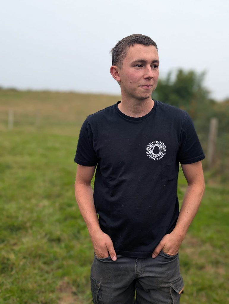 Julien et les poules c’est une histoire d’amour depuis l’enfance. C’était comme une évidence de rejoindre la ferme familiale et d’y développer un élevage bio plein air. Comme le nom l’indique, “Les œufs du verger”, les poules courent joyeusement entre les rangées de haies et d’arbres fruitiers.